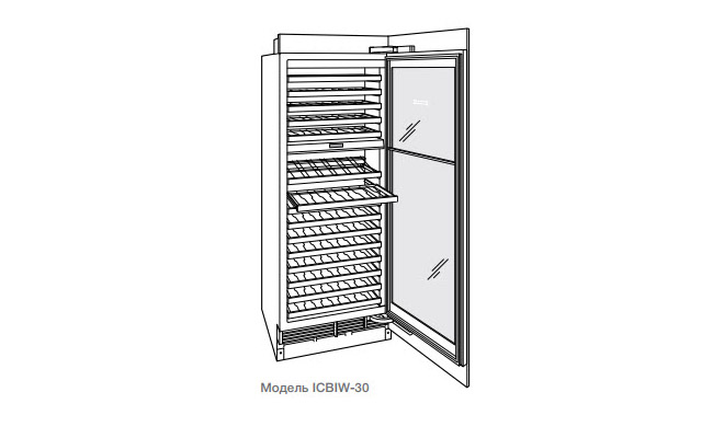 Винный шкаф ICBIW-30 нового поколения техники Sub-Zero шириной 762 мм вмещает 146 бутылок. Установка возможна в любом интерьере в любом помещении дома. У всех моделей скрыты такие элементы как вентиляционная решетка и петли, благодаря чему винный шкаф становится частью единого мебельного ансамбля. Помимо классических стальных фасадов с цилиндрической ручкой или ручкой Pro, возможна установка с мебельными фасадами.