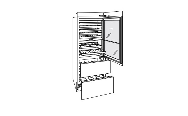 Винный шкаф с 2-мя холодильными камерами в виде выдвижных ящиков ICBIW-30R нового поколения техники Sub-Zero шириной 762 мм предлагает 3 независимые температурные зоны и вмещает 86 бутылок. Установка возможна в любом интерьере в любом помещении дома. У всех моделей скрыты такие элементы как вентиляционная решетка и петли, благодаря чему винный шкаф становится частью единого мебельного ансамбля. Помимо классических стальных фасадов с цилиндрической ручкой или ручкой Pro, возможна установка с мебельными фасадами.