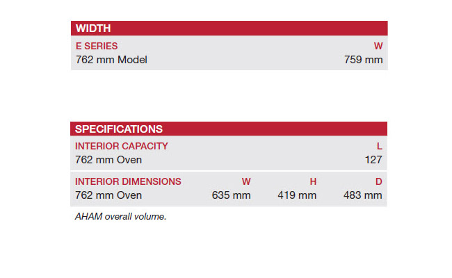 Внутренние размеры духового шкафа (Ш х В х Г) 635 х 419 х 483 мм