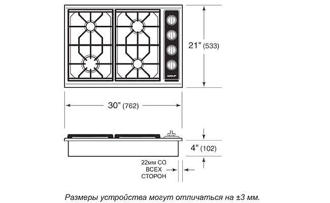 Бытовая техника → Печи, плиты, панели газовые → Wolf → Варочная панель газовая ICBCT30G/S Варочная панель газовая ICBCT30G/S.