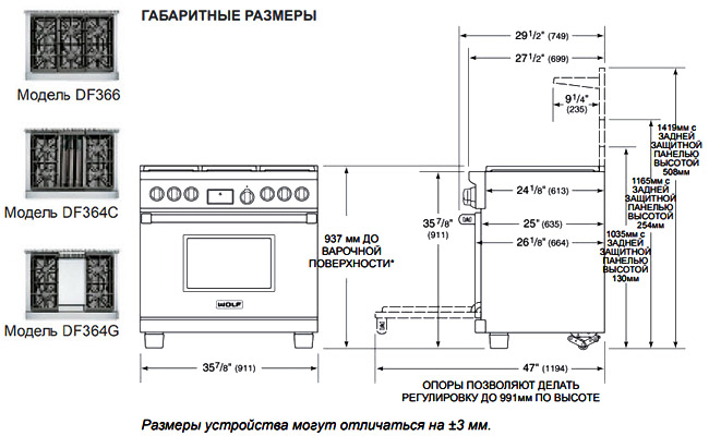 Кухонные блоки Wolf шириной 911 мм оснащены стандартными двухуровневыми герметичными конфорками и представлены в трех конфигурациях. Рабочая поверхность помимо конфорок может включать инфракрасный гриль или инфракрасный теппан. Большой электрический духовой шкаф наделен двойной системой конвекции, которая отвечает за равномерное распределение жара в каждом уголке камеры. Два вентилятора и четыре нагревательных элемента обеспечивают удобство для пользователя и превосходное управление десятью режимами приготовления. Сияющие галогенные лампы освещают красивый синий интерьер духовки.