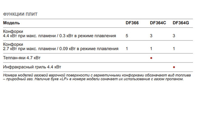 Режим томления на сверхнизком уровне пламени (True simmer) для всех конфорок и режим плавления (Melt) для маленьких конфорок