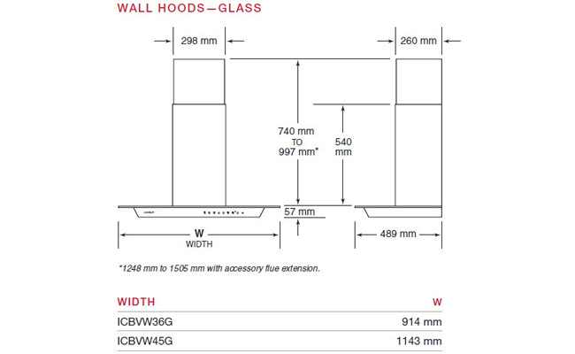 ICBVW45G - Настенная вытяжка европейской линии со стеклянной полкой 1143 мм