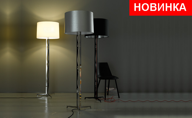 Ножки из анодированного алюминия, белый абажур из целлюлозного волокнистого материала.
