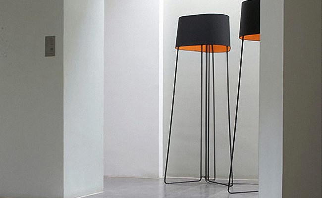 из вощеного сатина: снаружи черными, изнутри белыми или оранжевыми. Провод и ножной выключатель черные. Лампы в комплекте