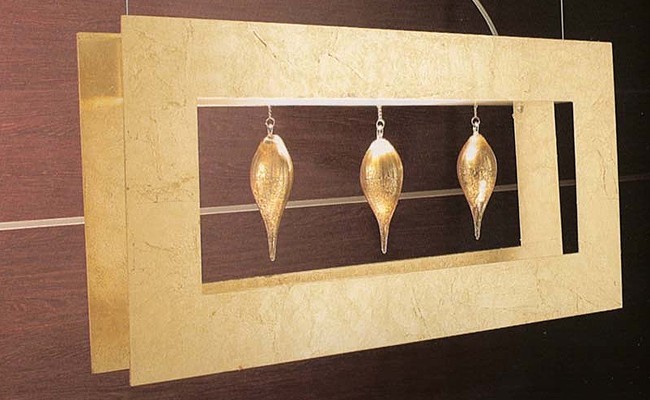 Masiero KLOK Лампа с арматурой из золотой фольги, подвеска из стекла ручной работы декорирована золотой фольгой. Подвесной светильник S1 SQ h-29 l-29 1x150W