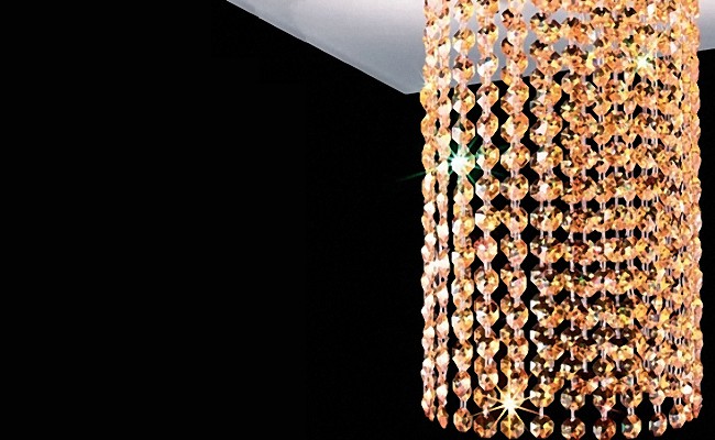 Masiero KIOCCIA Cпот или подвесной светильник с арматурой из хромированного металла или золота, подвески из цветного или прозрачного хрусталя Strass Swarovski .